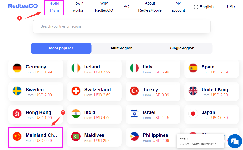 RedteaGo是一家出售esim旅行流量包的网站,提供多个国家的流量包。