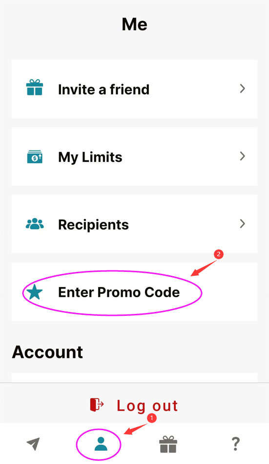 接下来依次点击APP底部的“Me”(小人图标) - “Enter Promo Code”,输入Q7YFK,然后点击“Apply Code”按钮。