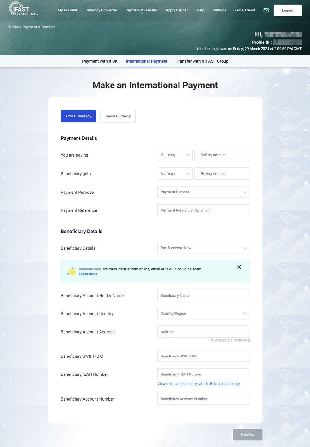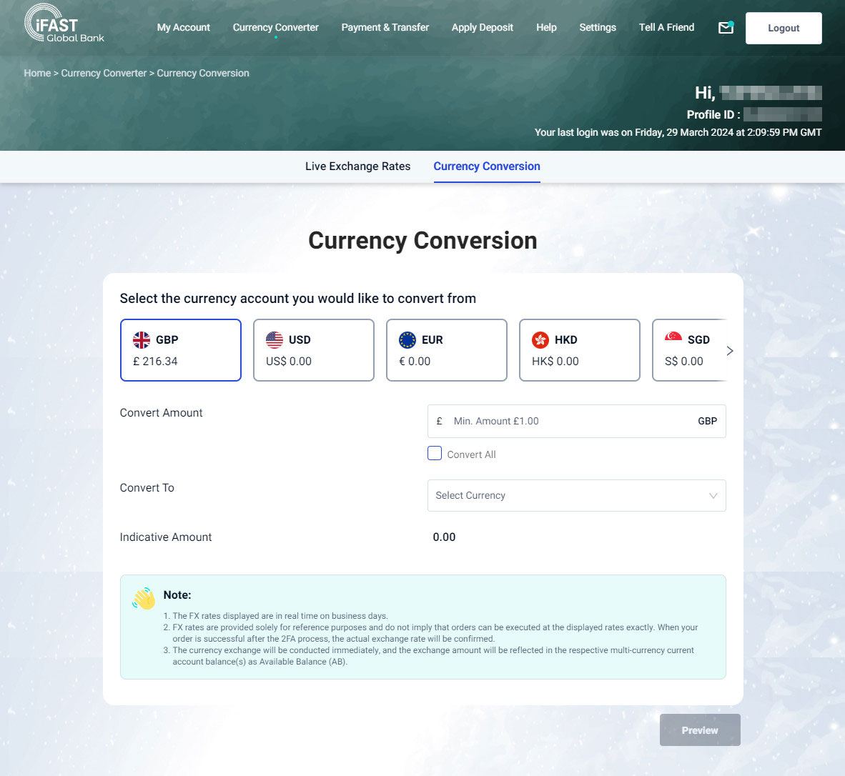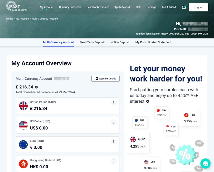 iFAST Global Bank有APP版和网页版,本文以网页版为例。APP的操作步骤与网页版基本相同。