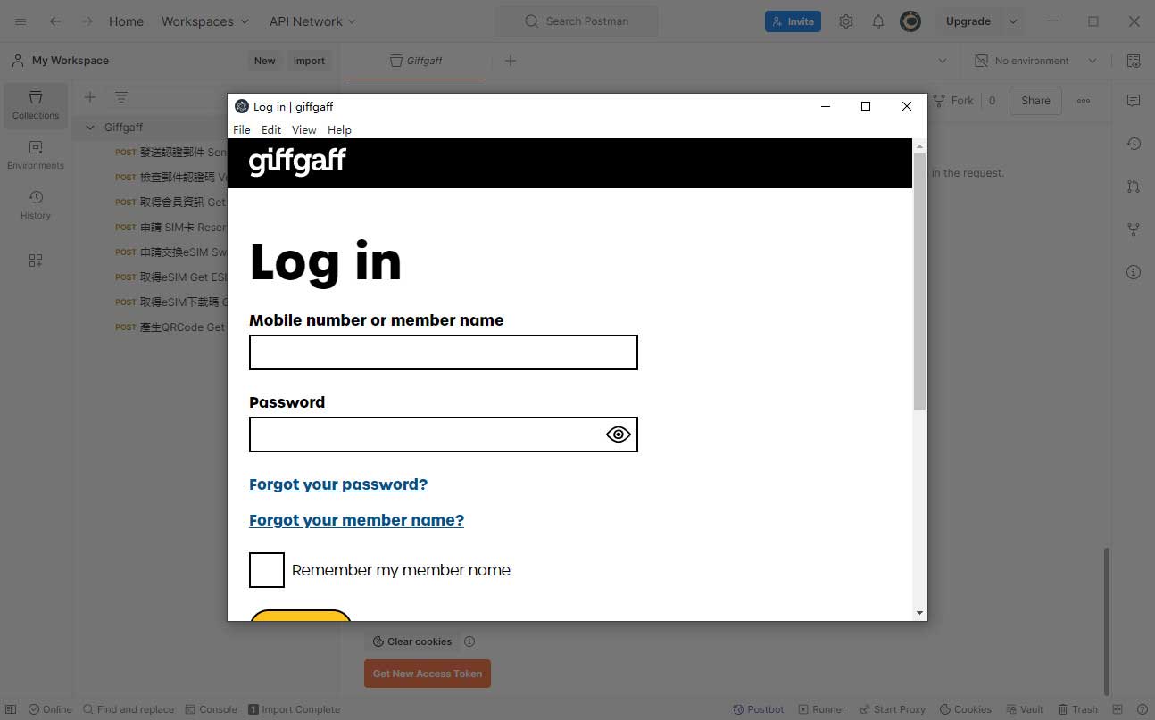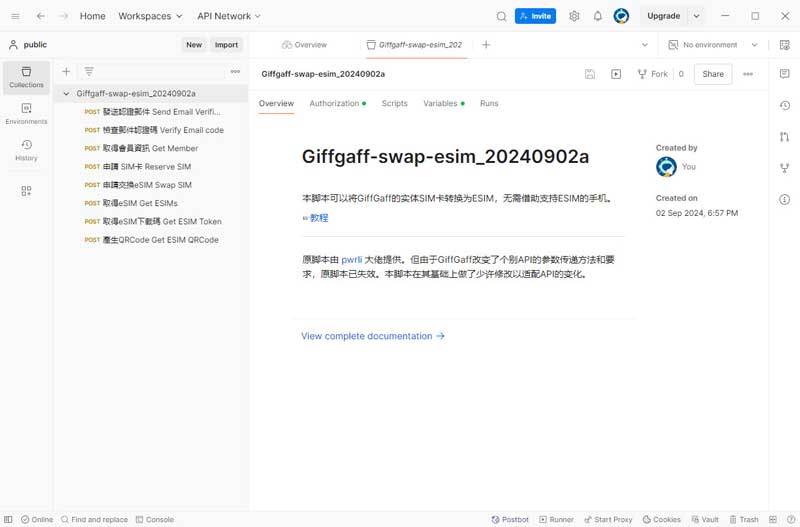 好在网上有大神写了PostMan脚本,通过HTTP请求的方式直接与Giffgaff的服务器进行通信来获取esim配置文件的下载链接,不依赖esim手机和Giffgaff APP。本文即介绍这个方法的操作步骤。