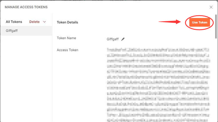 登录成功后,会看到如下图所示的Token Detail,点击“Use Token”按钮。此时相当于我们已经使用账号密码登录了Giffgaff APP。