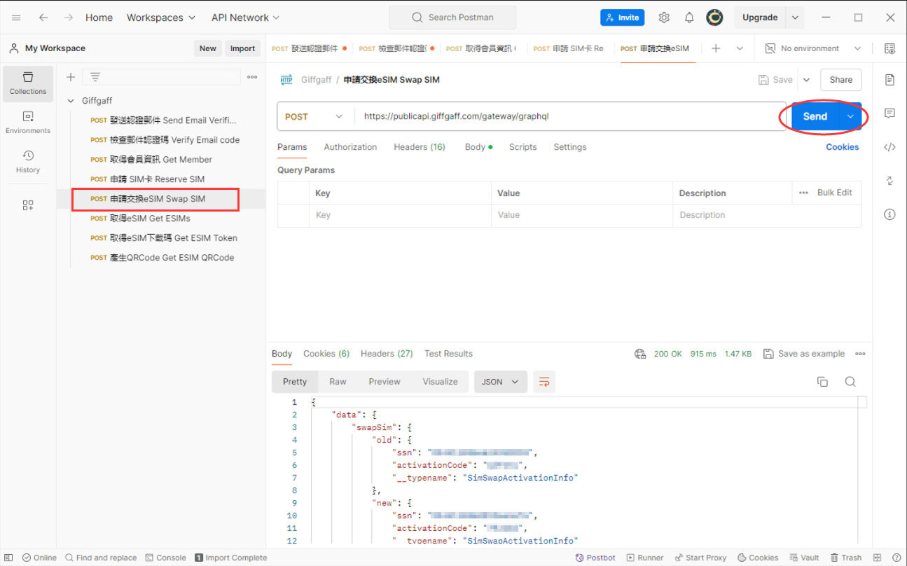下载GiffGaff实体卡转eSIM的PostMan脚本。(鼠标移到链接上方,点击右键,选择“链接另存为”)