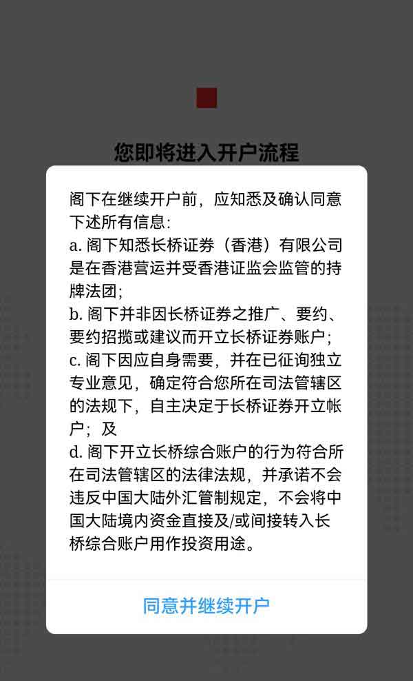 接下来会看到如下图所示的提示,点击“同意并继续开户”。
