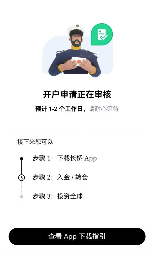 在银行APP完成操作后,回到长桥APP,点击“立即上传汇款凭证”按钮,上传银行汇款成功的页面截图,然后点击“提交”按钮。资金一般是一到两个工作日左右到账。