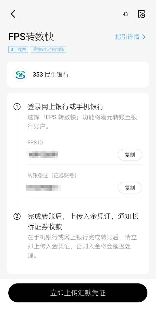 下图是通过FPS向长桥证券转账的收款人账号信息。