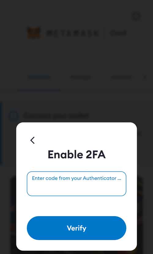 接下来在下图所示的文本框中输入2FA APP中显示的动态验证码,然后点击“Verify”按钮。