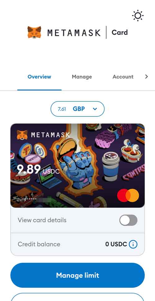进入狐狸卡的首页,点击下方的“Manage Limit”按钮。