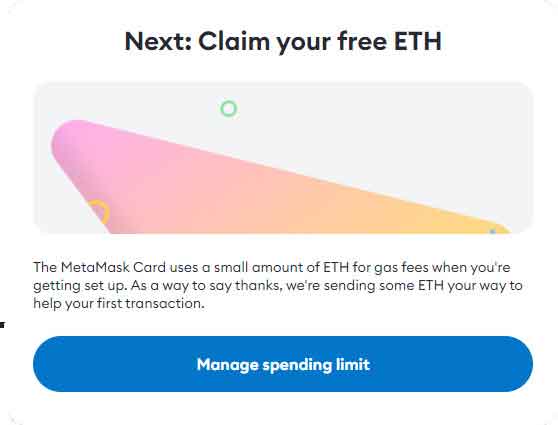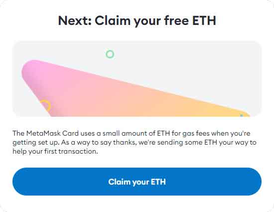 首次设置的时候,MetaMask会赠送我们少量ETH用于支付扣款授权操作时所需的gas费。点击“Claim your ETH”继续。