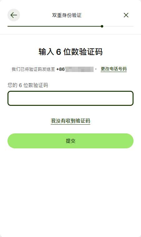 接下来,输入收到的短信验证码,然后点击“提交”按钮。