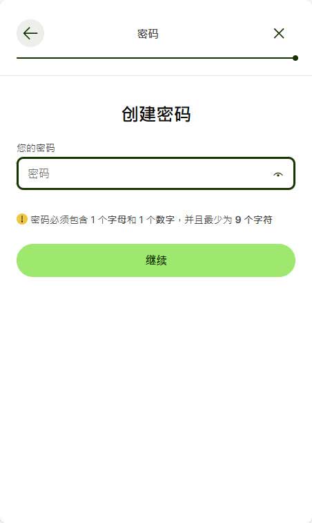 接下来,为账户设置密码。输入密码,然后点击“继续”按钮。